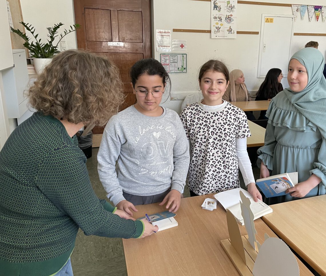 Im Anschluss an die Lesung gab es schließlich noch die Möglichkeit, das eigene Buch von Frau Behnke höchstpersönlich signieren zu lassen. Diese Gelegenheit ließen sich viele Kinder beider Klassen nicht nehmen.