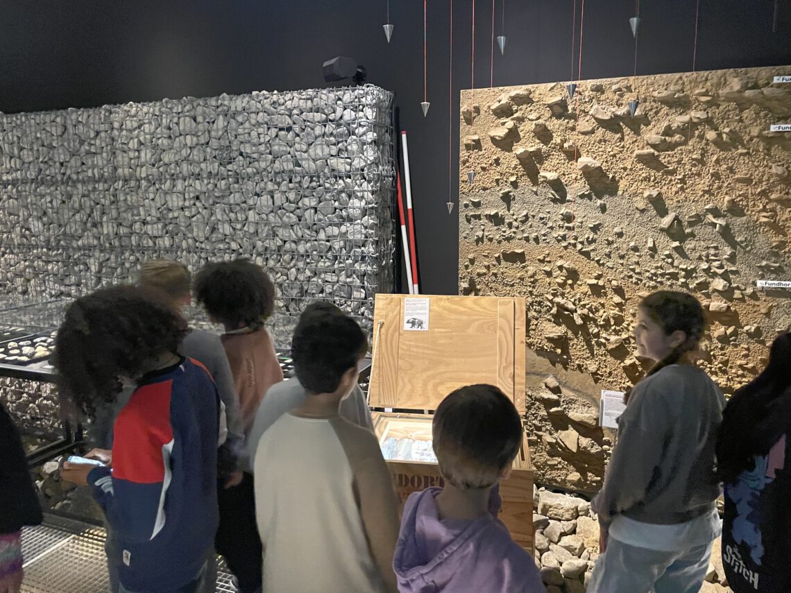 Im Rahmen einer abwechslungsreichen Führung erkundeten die Schülerinnen und Schüler das Leben in der Steinzeit. Wie jagten die Menschen damals? Welche Werkzeuge nutzten sie? Und wie unterscheidet sich ihr Alltag von unserem heutigen Leben? Mit großem Interesse verfolgten die Kinder die anschaulichen Erklärungen der Museumspädagoginnen und Museumspädagogen und staunten über die zahlreichen Originalfunde (z.B. Mammutzähne, Faustkeile etc.) und detailreichen Rekonstruktionen.
