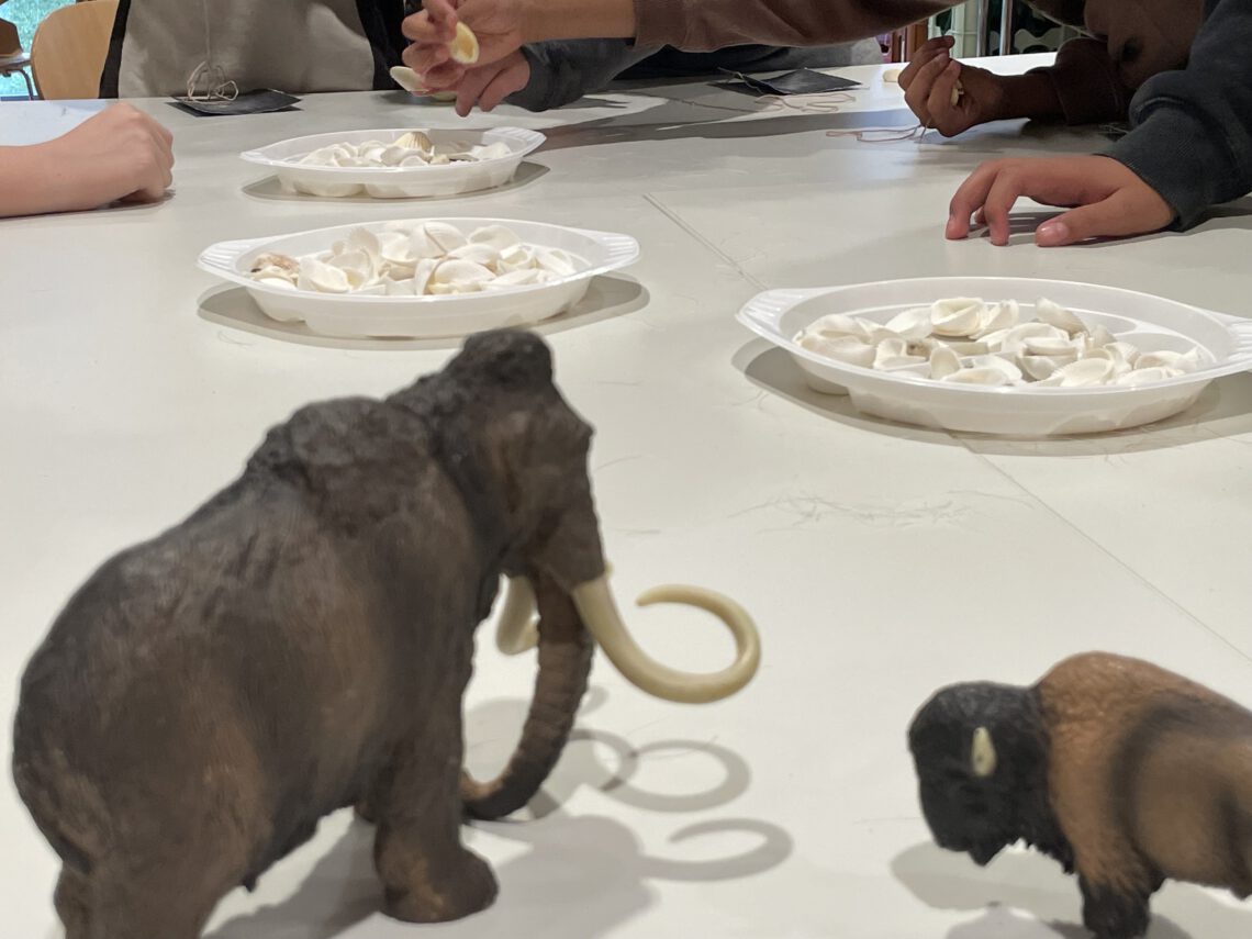 Ein besonderes Highlight bildete der anschließende Workshop „Steinzeitschmuck“. Aus Naturmaterialien wie Muscheln, Knochen und Schnüren konnten die Schülerinnen und Schüler eigenen Schmuck gestalten – ganz wie unsere Vorfahren vor mehreren Tausend Jahren. Mit viel Geschick und Kreativität entstanden einzigartige Erinnerungsstücke an diesen außergewöhnlichen Schultag.