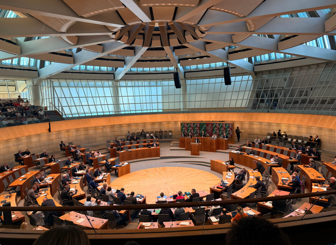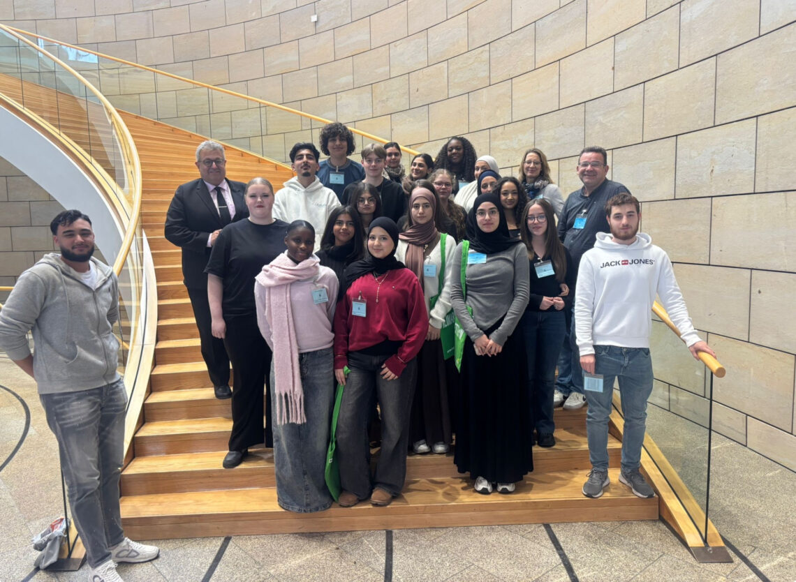 Am Mittwoch, den 5. November 2025, besuchten die Sozialwissenschaftskurse der Q1 gemeinsam mit den Kurslehrern Herrn Janiak und Frau Telges den Landtag in Düsseldorf. Um 9.00 Uhr versammelten wir uns vor dem Gebäude, wurden herzlich in Empfang genommen und erhielten eine Einführung in den Tagesablauf.