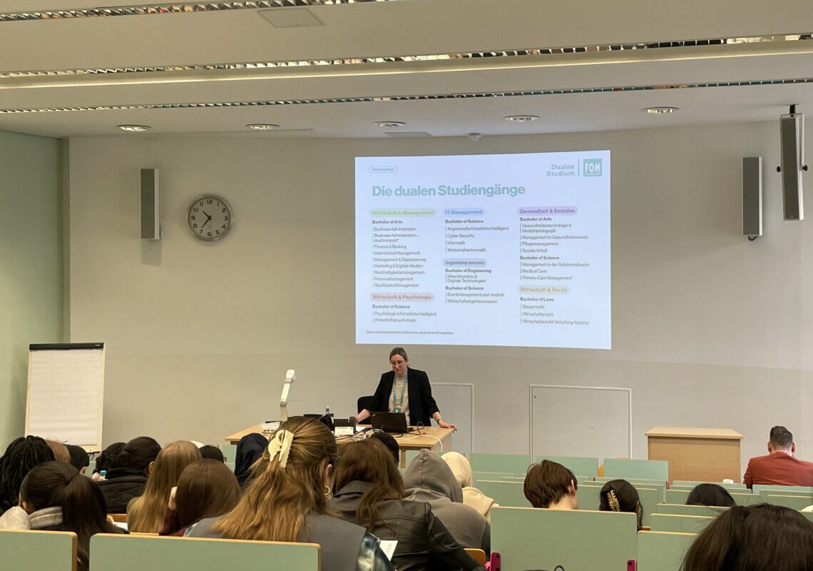 Neben einem grundlegenden Info-Vortrag zu den verschiedenen Studienoptionen, die die FOM bietet, nahmen die Schülerinnen und Schüler auch an zwei Probe-Vorlesungen teil: